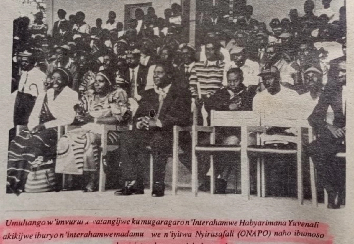 | P | | 15 novembre 1992 | | Umuhango w'imvurura vatangijwe ku mugaragaro n'Interahamwe Habyarimana Yuvenali akikijwe iburyo n'interahamwe madamu we n'iyitwa Nyirasafali (ONAPO) naho ibumoso... [Agathe Habyarimana en uniforme Interahamwe le 15 novembre 1992 à Ruhengeri] | The New Times |